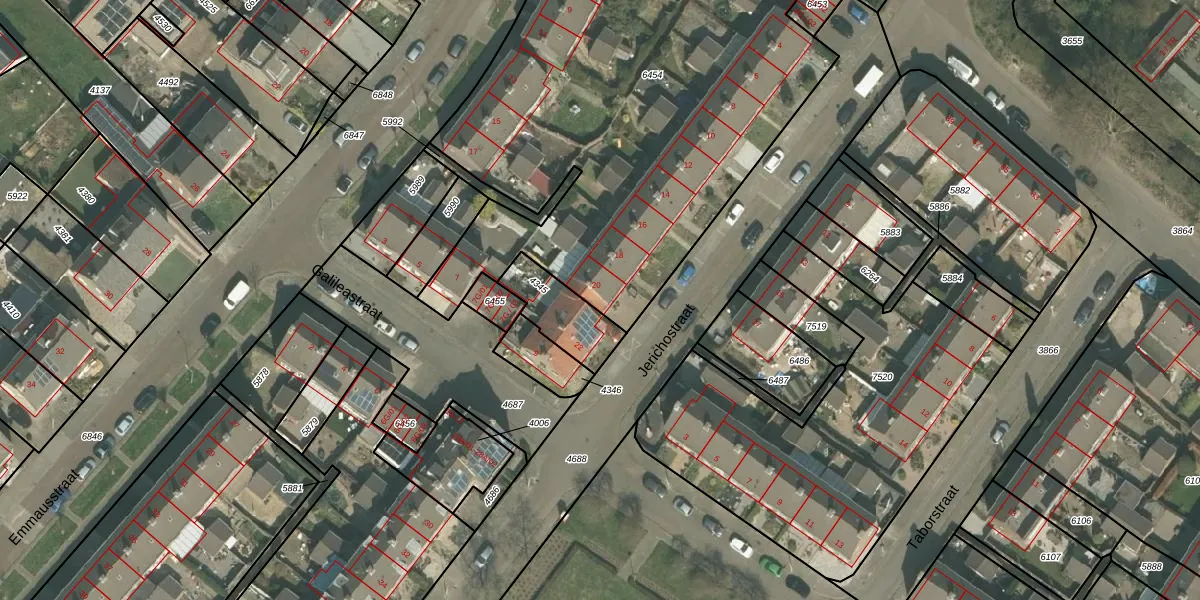 Jerichostraat 20 is gelegen op kadastraal perceel MTT00G6454. Deze kadastrale aanduiding is uniek en wordt gebruikt door het Kadaster om eigendomsrechten en andere zakelijke rechten vast te leggen. Het perceel maakt onderdeel uit van de kadastrale gemeente Maastricht.