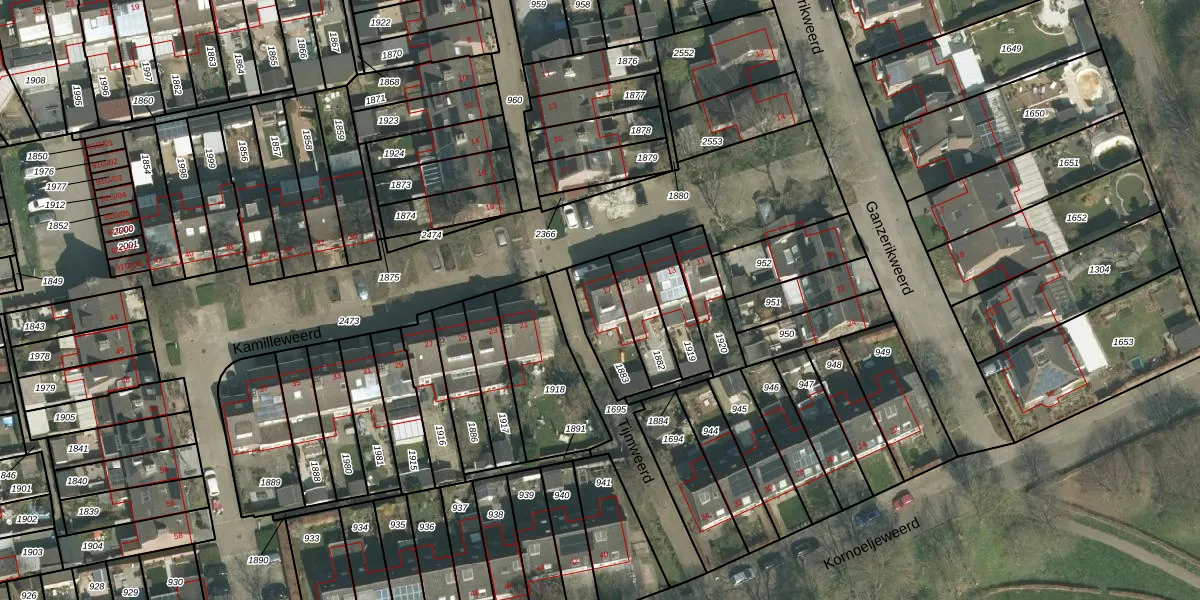 Het perceel waarop Kamilleweerd 17 staat heeft een oppervlakte van 171 m². Dit is een middelgroot perceel. De perceeloppervlakte wordt geregistreerd door het Kadaster. Gedetailleerde informatie over de maten van dit perceel kunt u vinden in het rapport Kadastrale kaart met maatvoering van Kamilleweerd 17.