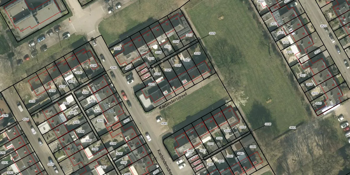 Karbindersdreef 11 is gelegen op kadastraal perceel MTT00K3325. Deze kadastrale aanduiding is uniek en wordt gebruikt door het Kadaster om eigendomsrechten en andere zakelijke rechten vast te leggen. Het perceel maakt onderdeel uit van de kadastrale gemeente Maastricht.