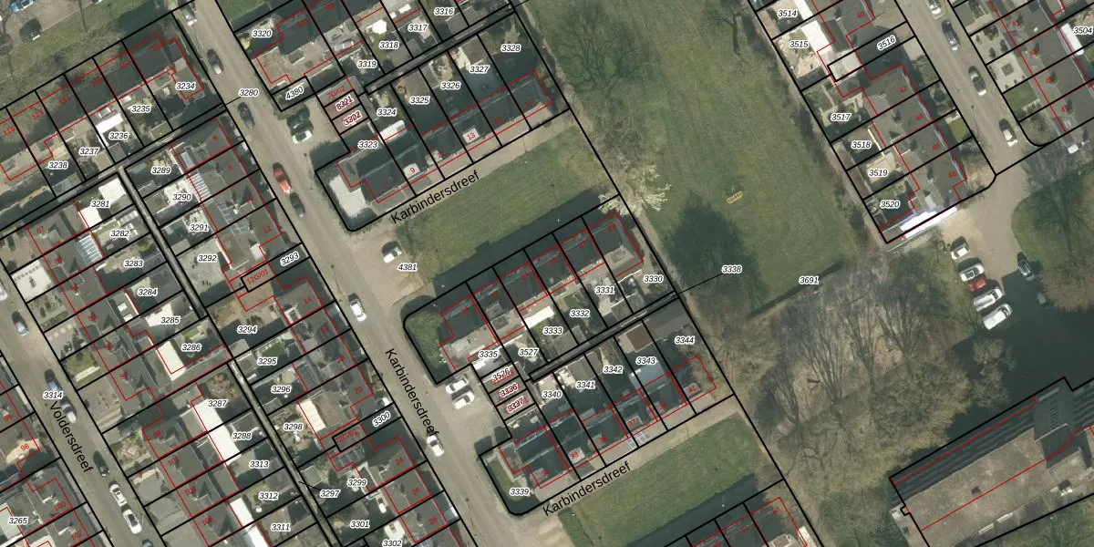 Karbindersdreef 25 is gelegen op kadastraal perceel MTT00K3332. Deze kadastrale aanduiding is uniek en wordt gebruikt door het Kadaster om eigendomsrechten en andere zakelijke rechten vast te leggen. Het perceel maakt onderdeel uit van de kadastrale gemeente Maastricht.