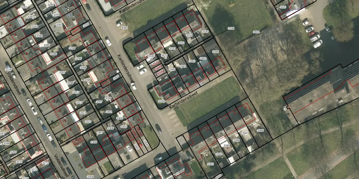 Karbindersdreef 33 is gelegen op kadastraal perceel MTT00K3340. Deze kadastrale aanduiding is uniek en wordt gebruikt door het Kadaster om eigendomsrechten en andere zakelijke rechten vast te leggen. Het perceel maakt onderdeel uit van de kadastrale gemeente Maastricht.
