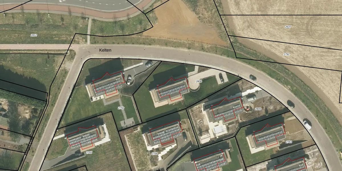 Het perceel waarop Kelten 4 staat heeft een oppervlakte van 1260 m². Dit is een zeer groot perceel. De perceeloppervlakte wordt geregistreerd door het Kadaster. Gedetailleerde informatie over de maten van dit perceel kunt u vinden in het rapport Kadastrale kaart met maatvoering van Kelten 4.