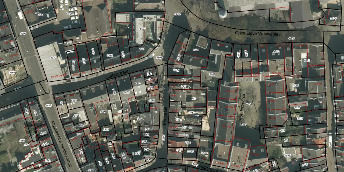 Koestraat 7-C is gelegen op kadastraal perceel MTT00B741. Deze kadastrale aanduiding is uniek en wordt gebruikt door het Kadaster om eigendomsrechten en andere zakelijke rechten vast te leggen. Het perceel maakt onderdeel uit van de kadastrale gemeente Maastricht.