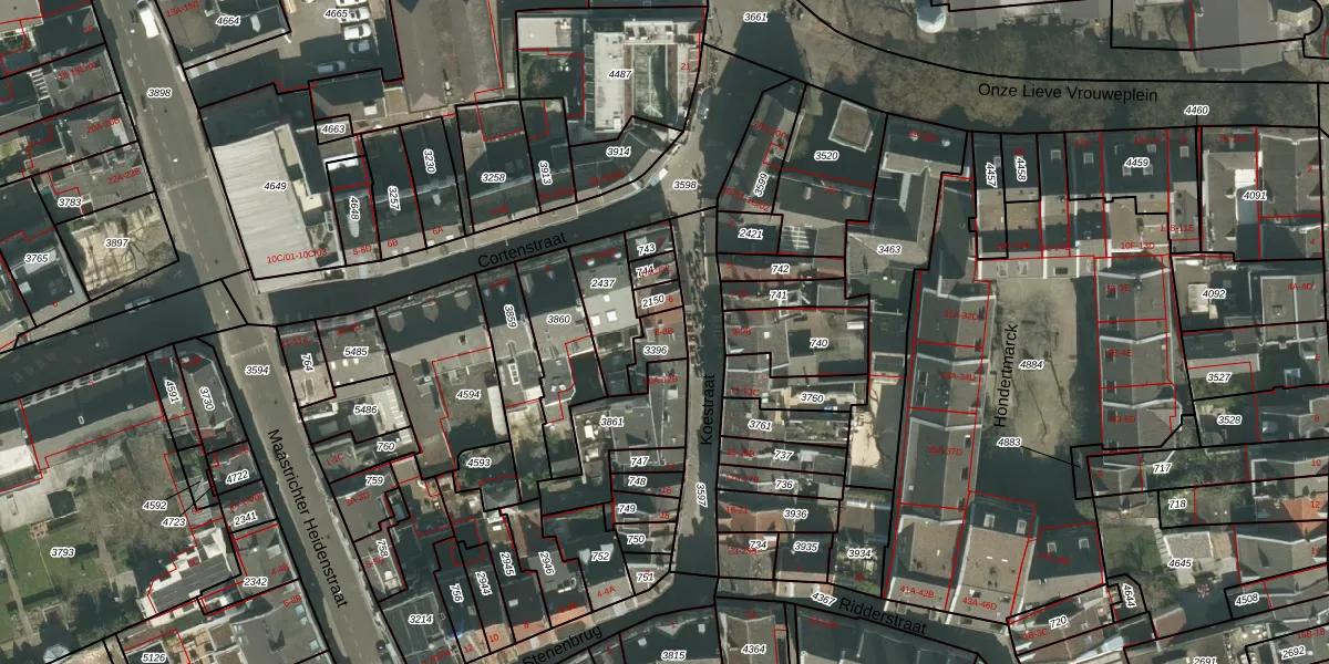 Koestraat 8 is gelegen op kadastraal perceel MTT00B3396. Deze kadastrale aanduiding is uniek en wordt gebruikt door het Kadaster om eigendomsrechten en andere zakelijke rechten vast te leggen. Het perceel maakt onderdeel uit van de kadastrale gemeente Maastricht.