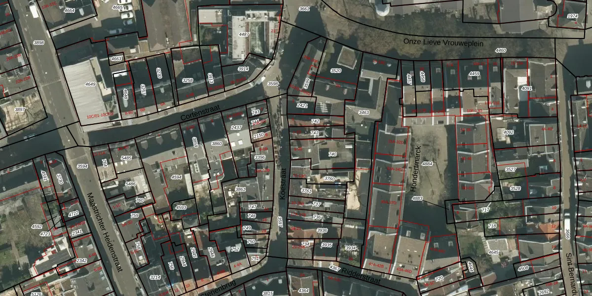 Koestraat 9-B is gelegen op kadastraal perceel MTT00B740. Deze kadastrale aanduiding is uniek en wordt gebruikt door het Kadaster om eigendomsrechten en andere zakelijke rechten vast te leggen. Het perceel maakt onderdeel uit van de kadastrale gemeente Maastricht.
