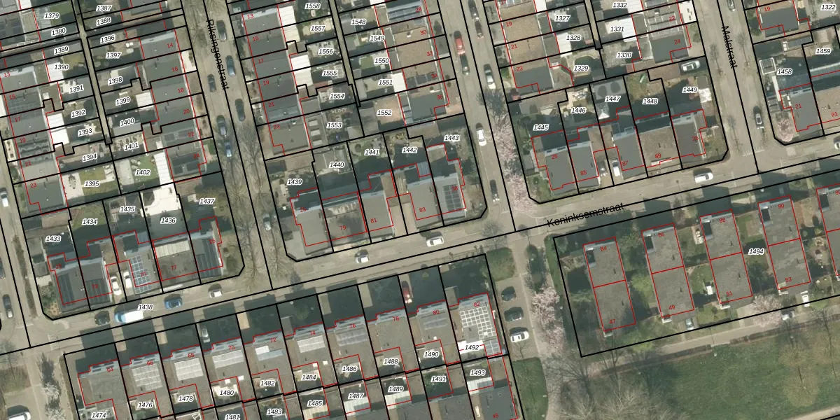 Het perceel waarop Koninksemstraat 83 staat heeft een oppervlakte van 215 m². Dit is een middelgroot perceel. De perceeloppervlakte wordt geregistreerd door het Kadaster. Gedetailleerde informatie over de maten van dit perceel kunt u vinden in het rapport Kadastrale kaart met maatvoering van Koninksemstraat 83.