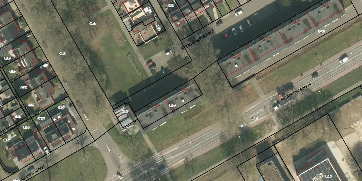Het perceel waarop Koperslagersdreef 37-D staat heeft een oppervlakte van 388 m². Dit is een groot perceel. De perceeloppervlakte wordt geregistreerd door het Kadaster. Gedetailleerde informatie over de maten van dit perceel kunt u vinden in het rapport Kadastrale kaart met maatvoering van Koperslagersdreef 37-D.