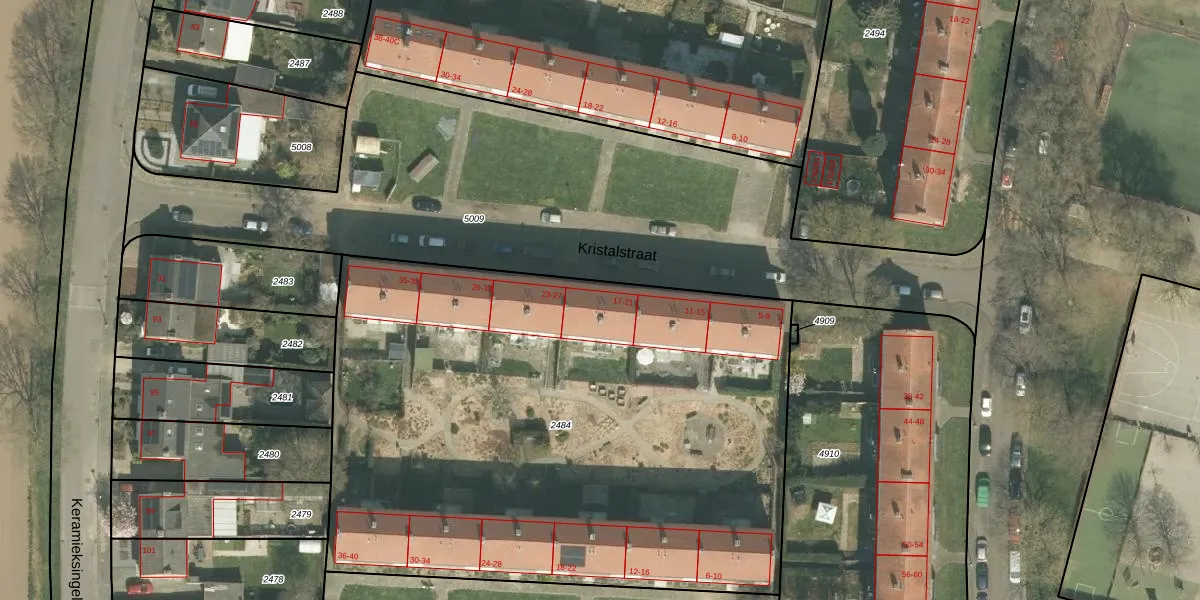Het perceel waarop Kristalstraat 21 staat heeft een oppervlakte van 3820 m². Dit is een zeer groot perceel. De perceeloppervlakte wordt geregistreerd door het Kadaster. Gedetailleerde informatie over de maten van dit perceel kunt u vinden in het rapport Kadastrale kaart met maatvoering van Kristalstraat 21.
