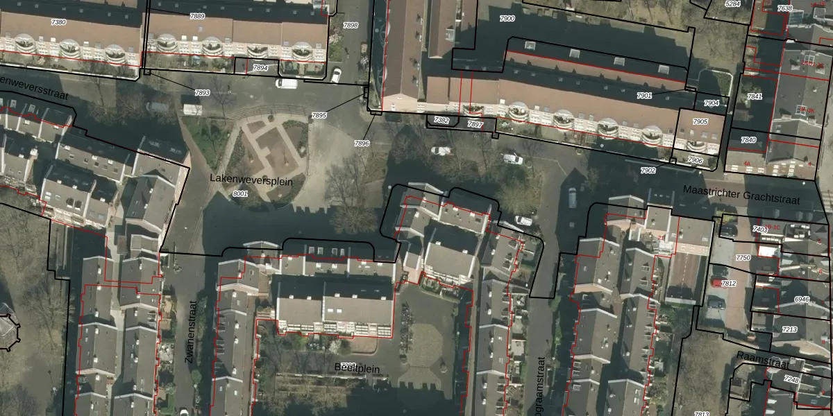 Lakenweversplein 1 is gelegen op kadastraal perceel MTT00A7206. Deze kadastrale aanduiding is uniek en wordt gebruikt door het Kadaster om eigendomsrechten en andere zakelijke rechten vast te leggen. Het perceel maakt onderdeel uit van de kadastrale gemeente Maastricht.