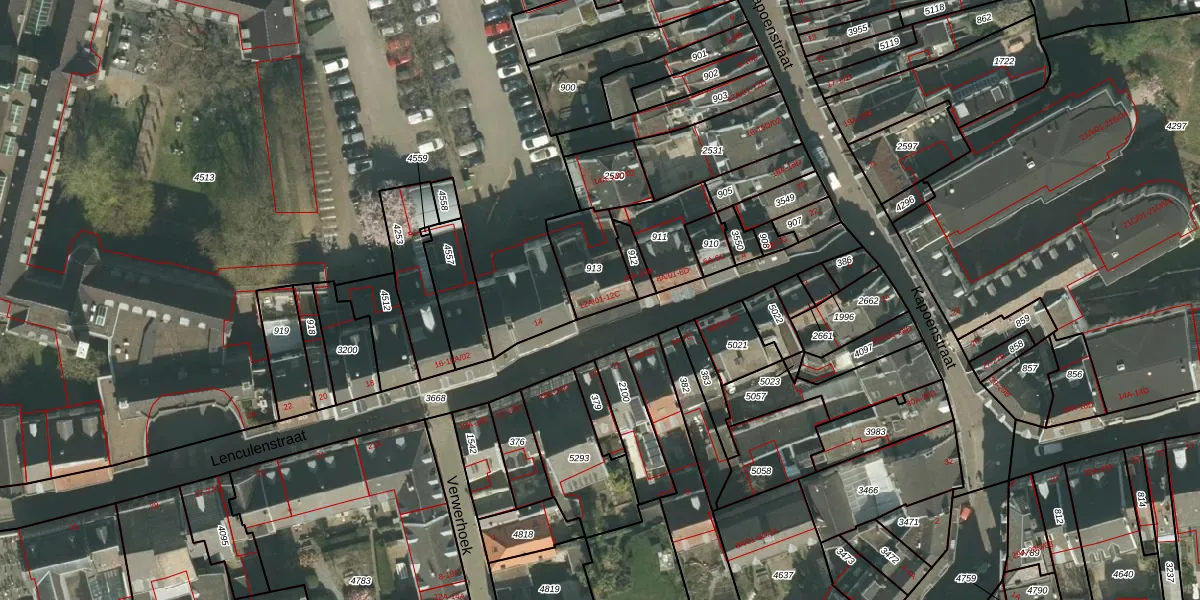Lenculenstraat 12-C is gelegen op kadastraal perceel MTT00B913. Deze kadastrale aanduiding is uniek en wordt gebruikt door het Kadaster om eigendomsrechten en andere zakelijke rechten vast te leggen. Het perceel maakt onderdeel uit van de kadastrale gemeente Maastricht.