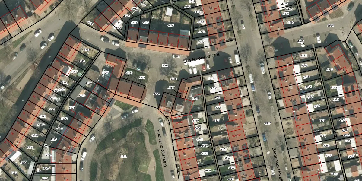 Het perceel waarop Leo Moonenstraat 21 staat heeft een oppervlakte van 82 m². Dit is een klein perceel. De perceeloppervlakte wordt geregistreerd door het Kadaster. Gedetailleerde informatie over de maten van dit perceel kunt u vinden in het rapport Kadastrale kaart met maatvoering van Leo Moonenstraat 21.