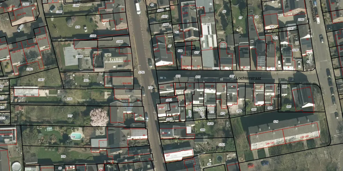 Lochterstraat 33 is gelegen op kadastraal perceel MTT00M710. Deze kadastrale aanduiding is uniek en wordt gebruikt door het Kadaster om eigendomsrechten en andere zakelijke rechten vast te leggen. Het perceel maakt onderdeel uit van de kadastrale gemeente Maastricht.
