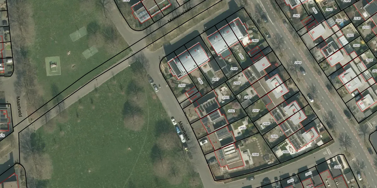 Maartveld 2-G-01 is gelegen op kadastraal perceel ABY00C2455. Deze kadastrale aanduiding is uniek en wordt gebruikt door het Kadaster om eigendomsrechten en andere zakelijke rechten vast te leggen. Het perceel maakt onderdeel uit van de kadastrale gemeente Amby.