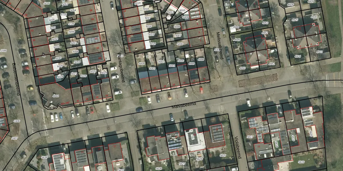 Het perceel waarop Malvabeemd 16 staat heeft een oppervlakte van 133 m². Dit is een middelgroot perceel. De perceeloppervlakte wordt geregistreerd door het Kadaster. Gedetailleerde informatie over de maten van dit perceel kunt u vinden in het rapport Kadastrale kaart met maatvoering van Malvabeemd 16.