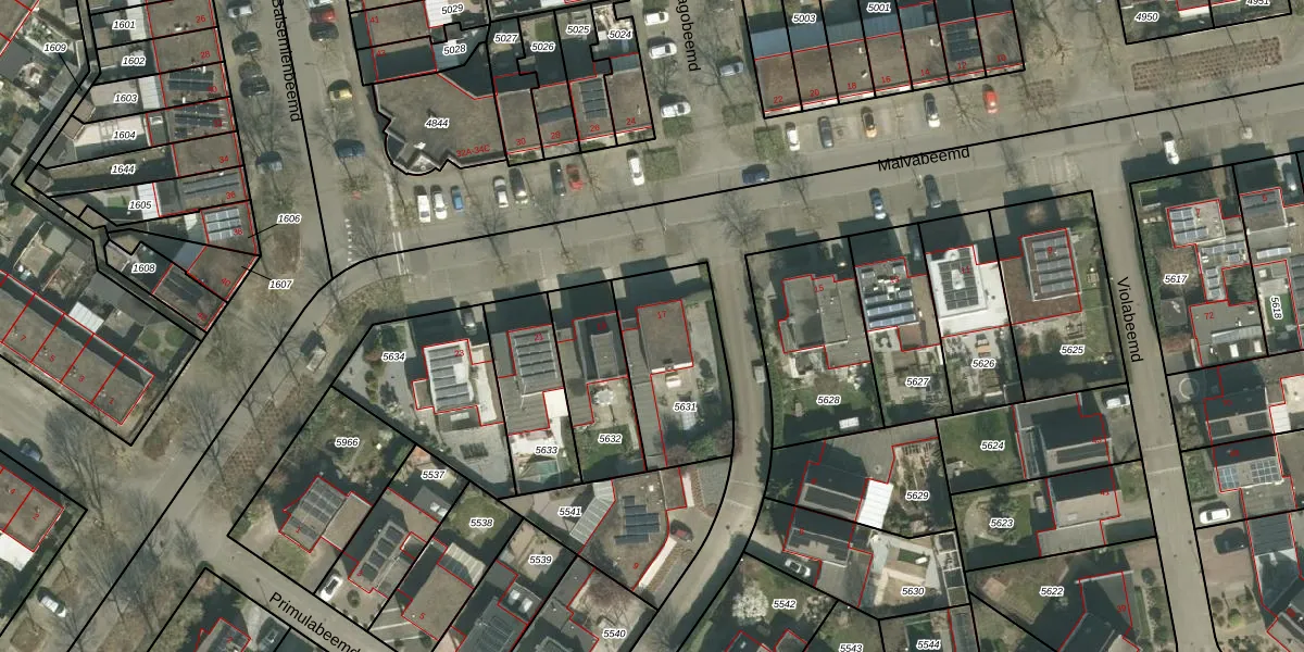 Gebruik de zoekbalk of klik op een perceel voor informatie over de adressen binnen dit perceel.