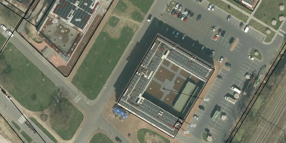 Het perceel waarop Masadastraat 59-B-07 staat heeft een oppervlakte van 2565 m². Dit is een zeer groot perceel. De perceeloppervlakte wordt geregistreerd door het Kadaster. Gedetailleerde informatie over de maten van dit perceel kunt u vinden in het rapport Kadastrale kaart met maatvoering van Masadastraat 59-B-07.