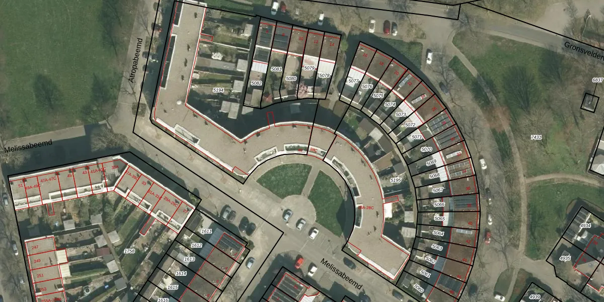 Het perceel waarop Melissabeemd 40 staat heeft een oppervlakte van 1870 m². Dit is een zeer groot perceel. De perceeloppervlakte wordt geregistreerd door het Kadaster. Gedetailleerde informatie over de maten van dit perceel kunt u vinden in het rapport Kadastrale kaart met maatvoering van Melissabeemd 40.