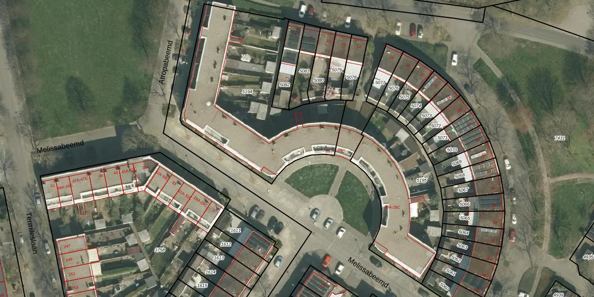 Melissabeemd 44-C is gelegen op kadastraal perceel MTT00P5194. Deze kadastrale aanduiding is uniek en wordt gebruikt door het Kadaster om eigendomsrechten en andere zakelijke rechten vast te leggen. Het perceel maakt onderdeel uit van de kadastrale gemeente Maastricht.