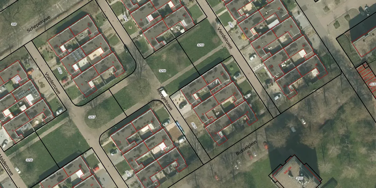 Het perceel waarop Mengelruwe 7 staat heeft een oppervlakte van 1619 m². Dit is een zeer groot perceel. De perceeloppervlakte wordt geregistreerd door het Kadaster. Gedetailleerde informatie over de maten van dit perceel kunt u vinden in het rapport Kadastrale kaart met maatvoering van Mengelruwe 7.