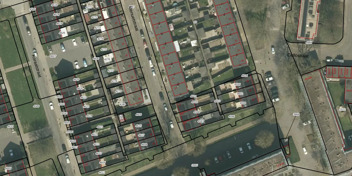Het perceel waarop Menuetstraat 27 staat heeft een oppervlakte van 4070 m². Dit is een zeer groot perceel. De perceeloppervlakte wordt geregistreerd door het Kadaster. Gedetailleerde informatie over de maten van dit perceel kunt u vinden in het rapport Kadastrale kaart met maatvoering van Menuetstraat 27.