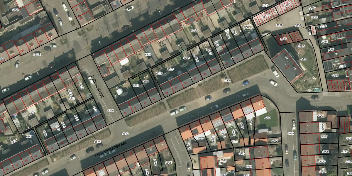 Merovingenstraat 36 is gelegen op kadastraal perceel MTT00G6818. Deze kadastrale aanduiding is uniek en wordt gebruikt door het Kadaster om eigendomsrechten en andere zakelijke rechten vast te leggen. Het perceel maakt onderdeel uit van de kadastrale gemeente Maastricht.