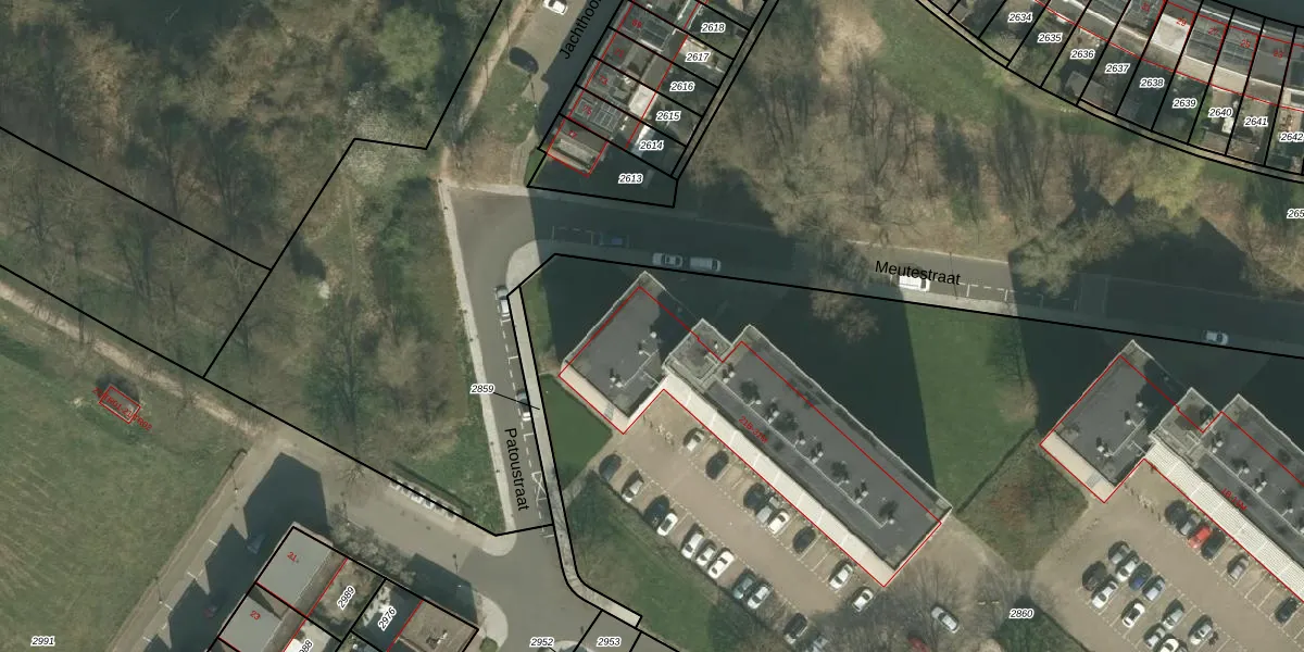 Het perceel waarop Meutestraat 21-M staat heeft een oppervlakte van 1,0 ha. Dit is een zeer groot perceel. De perceeloppervlakte wordt geregistreerd door het Kadaster. Gedetailleerde informatie over de maten van dit perceel kunt u vinden in het rapport Kadastrale kaart met maatvoering van Meutestraat 21-M.