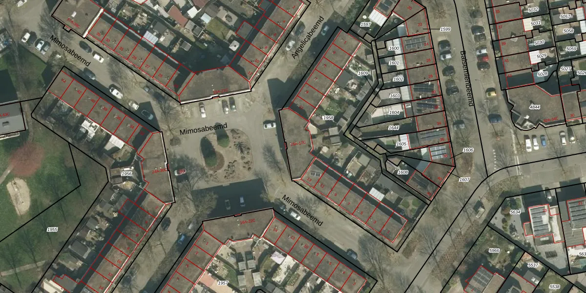 Het perceel waarop Mimosabeemd 15-A staat heeft een oppervlakte van 1796 m². Dit is een zeer groot perceel. De perceeloppervlakte wordt geregistreerd door het Kadaster. Gedetailleerde informatie over de maten van dit perceel kunt u vinden in het rapport Kadastrale kaart met maatvoering van Mimosabeemd 15-A.