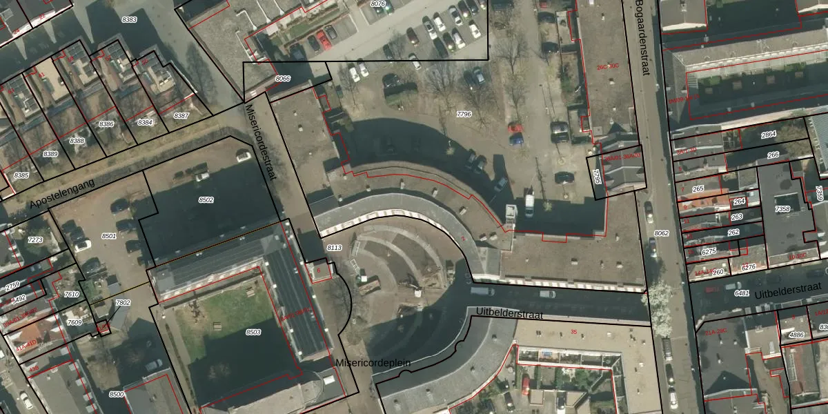 Het perceel waarop Misericordeplein 4 staat heeft een oppervlakte van 5125 m². Dit is een zeer groot perceel. De perceeloppervlakte wordt geregistreerd door het Kadaster. Gedetailleerde informatie over de maten van dit perceel kunt u vinden in het rapport Kadastrale kaart met maatvoering van Misericordeplein 4.