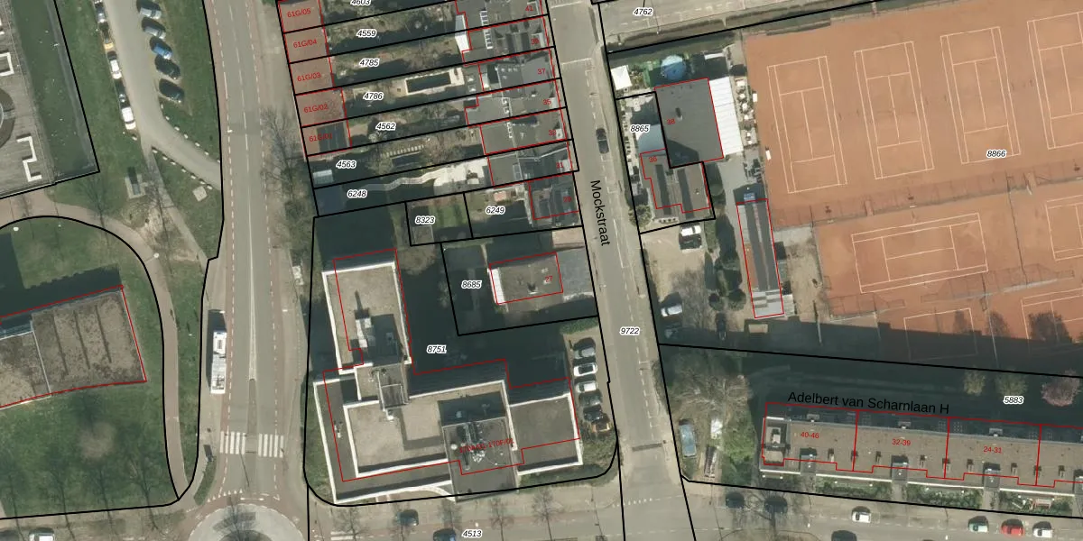 Het perceel waarop Mockstraat 27 staat heeft een oppervlakte van 455 m². Dit is een groot perceel. De perceeloppervlakte wordt geregistreerd door het Kadaster. Gedetailleerde informatie over de maten van dit perceel kunt u vinden in het rapport Kadastrale kaart met maatvoering van Mockstraat 27.