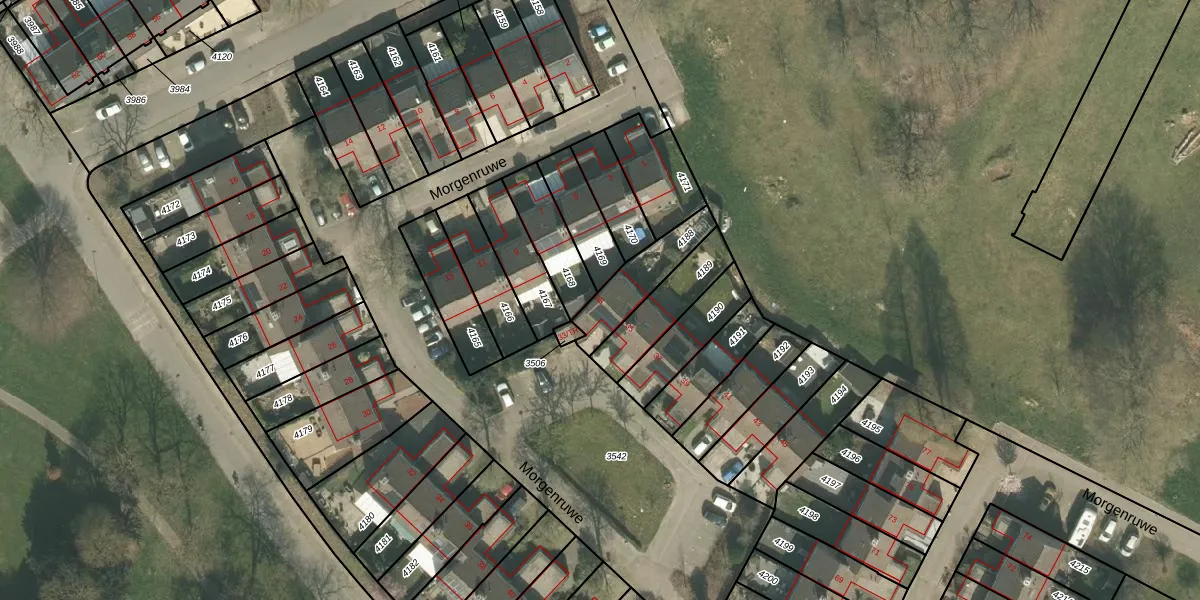 Het perceel waarop Morgenruwe 33 staat heeft een oppervlakte van 178 m². Dit is een middelgroot perceel. De perceeloppervlakte wordt geregistreerd door het Kadaster. Gedetailleerde informatie over de maten van dit perceel kunt u vinden in het rapport Kadastrale kaart met maatvoering van Morgenruwe 33.