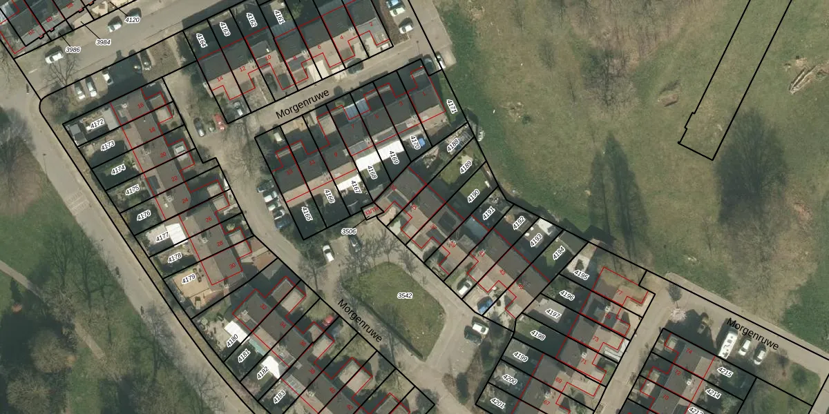Het perceel waarop Morgenruwe 35 staat heeft een oppervlakte van 186 m². Dit is een middelgroot perceel. De perceeloppervlakte wordt geregistreerd door het Kadaster. Gedetailleerde informatie over de maten van dit perceel kunt u vinden in het rapport Kadastrale kaart met maatvoering van Morgenruwe 35.