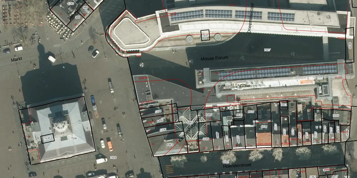 Het perceel waarop Mosae Forum 72 staat heeft een oppervlakte van 1,1 ha. Dit is een zeer groot perceel. De perceeloppervlakte wordt geregistreerd door het Kadaster. Gedetailleerde informatie over de maten van dit perceel kunt u vinden in het rapport Kadastrale kaart met maatvoering van Mosae Forum 72.