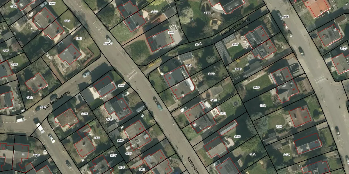 Mosasaurusweg 41 is gelegen op kadastraal perceel PTR00B3460. Deze kadastrale aanduiding is uniek en wordt gebruikt door het Kadaster om eigendomsrechten en andere zakelijke rechten vast te leggen. Het perceel maakt onderdeel uit van de kadastrale gemeente Sint Pieter.