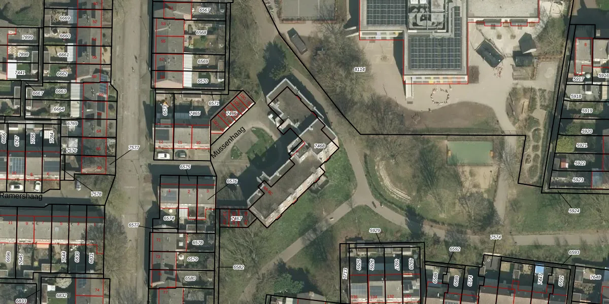 Het perceel waarop Mussenhaag 7-C staat heeft een oppervlakte van 511 m². Dit is een groot perceel. De perceeloppervlakte wordt geregistreerd door het Kadaster. Gedetailleerde informatie over de maten van dit perceel kunt u vinden in het rapport Kadastrale kaart met maatvoering van Mussenhaag 7-C.