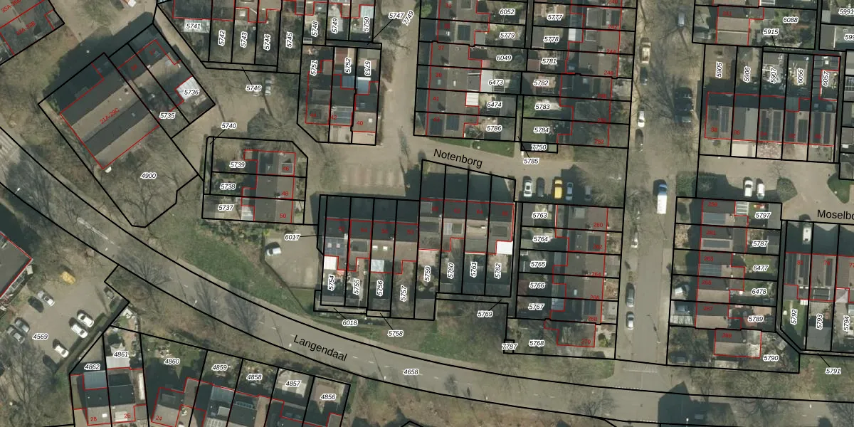 Notenborg 60 is gelegen op kadastraal perceel MTT00P5759. Deze kadastrale aanduiding is uniek en wordt gebruikt door het Kadaster om eigendomsrechten en andere zakelijke rechten vast te leggen. Het perceel maakt onderdeel uit van de kadastrale gemeente Maastricht.