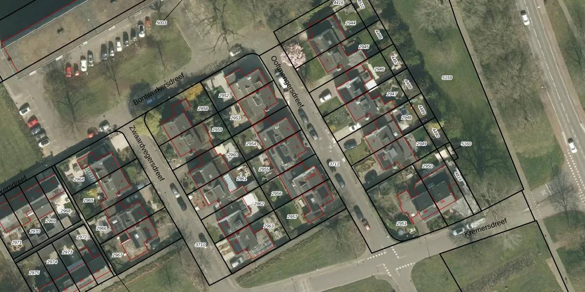 Gebruik de zoekbalk of klik op een perceel voor informatie over de adressen binnen dit perceel.