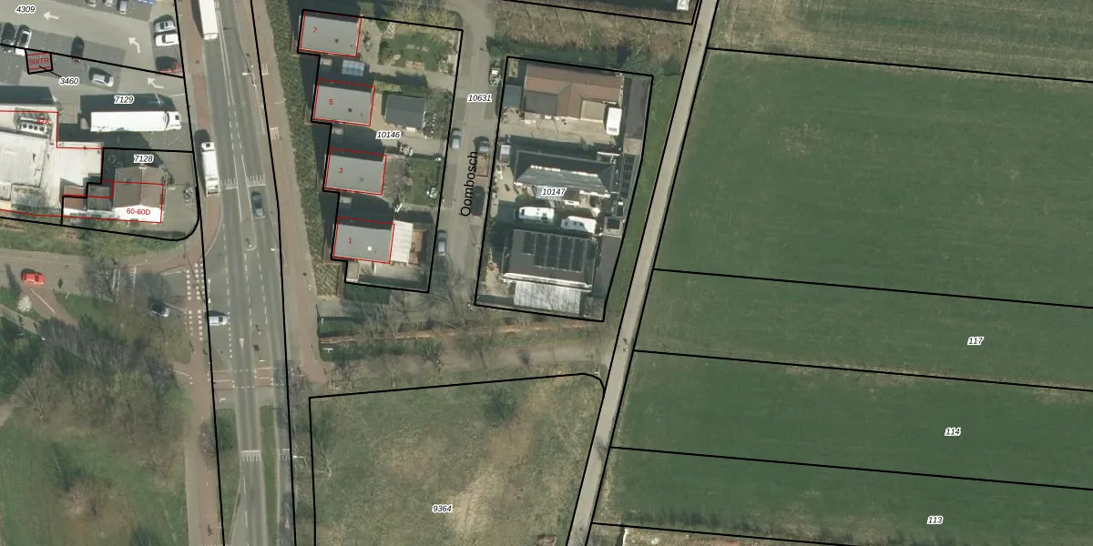 Het perceel waarop Oombosch 2 staat heeft een oppervlakte van 1155 m². Dit is een zeer groot perceel. De perceeloppervlakte wordt geregistreerd door het Kadaster. Gedetailleerde informatie over de maten van dit perceel kunt u vinden in het rapport Kadastrale kaart met maatvoering van Oombosch 2.