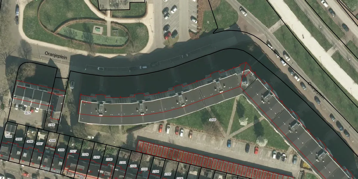 Het perceel waarop Oranjeplein 39-D staat heeft een oppervlakte van 8520 m². Dit is een zeer groot perceel. De perceeloppervlakte wordt geregistreerd door het Kadaster. Gedetailleerde informatie over de maten van dit perceel kunt u vinden in het rapport Kadastrale kaart met maatvoering van Oranjeplein 39-D.
