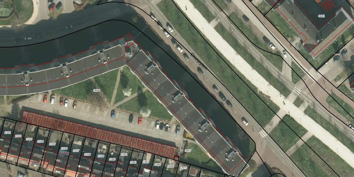Het perceel waarop Oranjeplein 45-F staat heeft een oppervlakte van 8520 m². Dit is een zeer groot perceel. De perceeloppervlakte wordt geregistreerd door het Kadaster. Gedetailleerde informatie over de maten van dit perceel kunt u vinden in het rapport Kadastrale kaart met maatvoering van Oranjeplein 45-F.