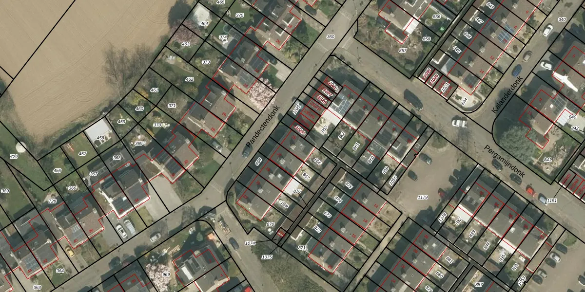 Het perceel waarop Pandectendonk 25 staat heeft een oppervlakte van 155 m². Dit is een middelgroot perceel. De perceeloppervlakte wordt geregistreerd door het Kadaster. Gedetailleerde informatie over de maten van dit perceel kunt u vinden in het rapport Kadastrale kaart met maatvoering van Pandectendonk 25.