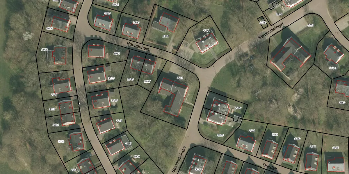 Het perceel waarop Pappenheim 1 staat heeft een oppervlakte van 816 m². Dit is een groot perceel. De perceeloppervlakte wordt geregistreerd door het Kadaster. Gedetailleerde informatie over de maten van dit perceel kunt u vinden in het rapport Kadastrale kaart met maatvoering van Pappenheim 1.