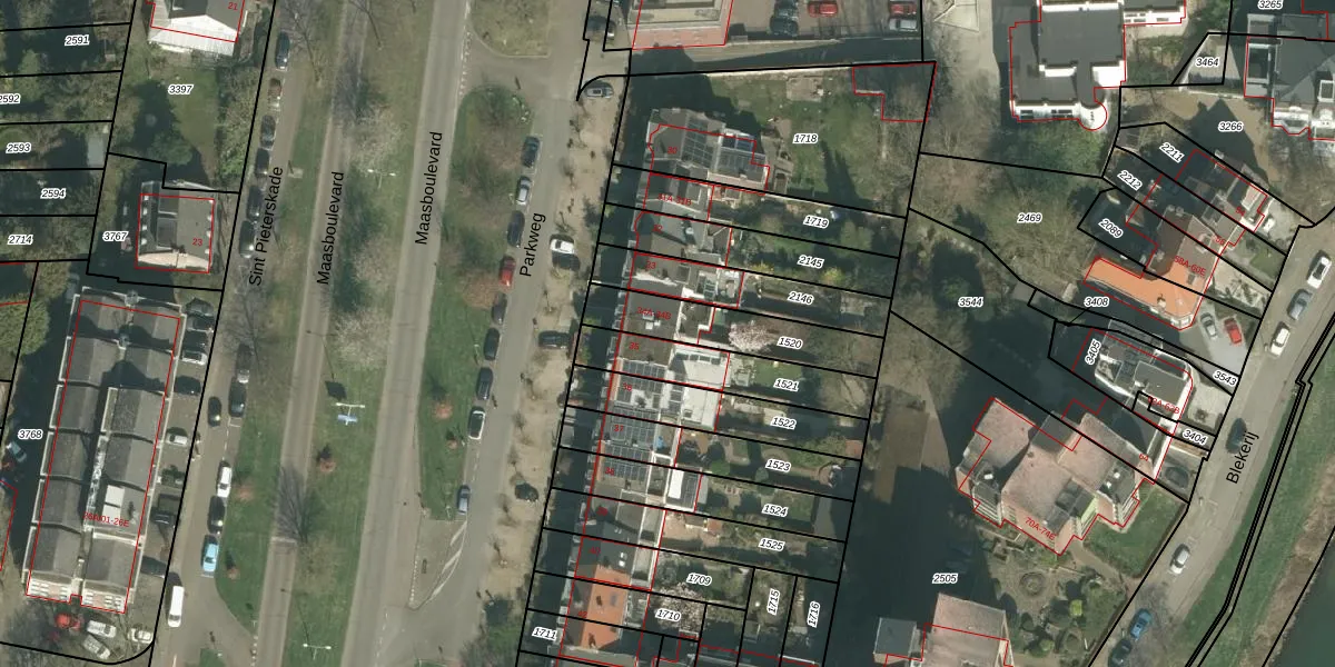 Parkweg 34-B is gelegen op kadastraal perceel MTT00E1520. Deze kadastrale aanduiding is uniek en wordt gebruikt door het Kadaster om eigendomsrechten en andere zakelijke rechten vast te leggen. Het perceel maakt onderdeel uit van de kadastrale gemeente Maastricht.
