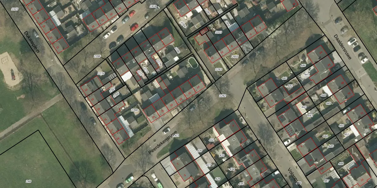Het perceel waarop Peerdekensruwe 16 staat heeft een oppervlakte van 1537 m². Dit is een zeer groot perceel. De perceeloppervlakte wordt geregistreerd door het Kadaster. Gedetailleerde informatie over de maten van dit perceel kunt u vinden in het rapport Kadastrale kaart met maatvoering van Peerdekensruwe 16.