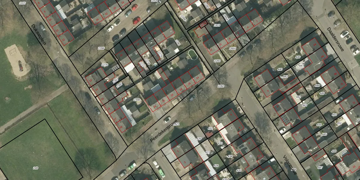 Het perceel waarop Peerdekensruwe 18 staat heeft een oppervlakte van 1537 m². Dit is een zeer groot perceel. De perceeloppervlakte wordt geregistreerd door het Kadaster. Gedetailleerde informatie over de maten van dit perceel kunt u vinden in het rapport Kadastrale kaart met maatvoering van Peerdekensruwe 18.