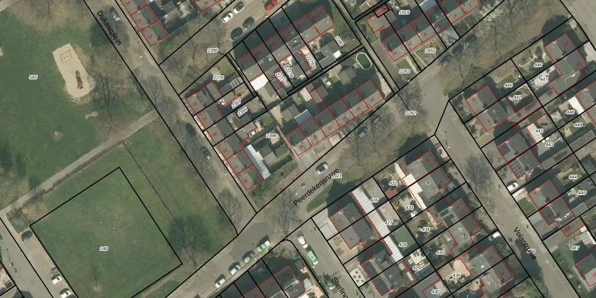 Het perceel waarop Peerdekensruwe 24 staat heeft een oppervlakte van 1537 m². Dit is een zeer groot perceel. De perceeloppervlakte wordt geregistreerd door het Kadaster. Gedetailleerde informatie over de maten van dit perceel kunt u vinden in het rapport Kadastrale kaart met maatvoering van Peerdekensruwe 24.