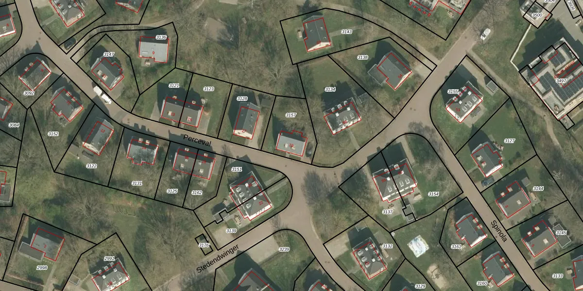 Het perceel waarop Perceval 19 staat heeft een oppervlakte van 320 m². Dit is een groot perceel. De perceeloppervlakte wordt geregistreerd door het Kadaster. Gedetailleerde informatie over de maten van dit perceel kunt u vinden in het rapport Kadastrale kaart met maatvoering van Perceval 19.