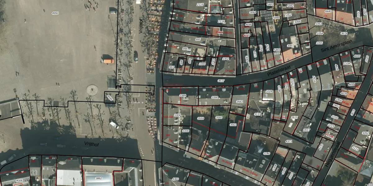 Platielstraat 23 is gelegen op kadastraal perceel MTT00B3389. Deze kadastrale aanduiding is uniek en wordt gebruikt door het Kadaster om eigendomsrechten en andere zakelijke rechten vast te leggen. Het perceel maakt onderdeel uit van de kadastrale gemeente Maastricht.