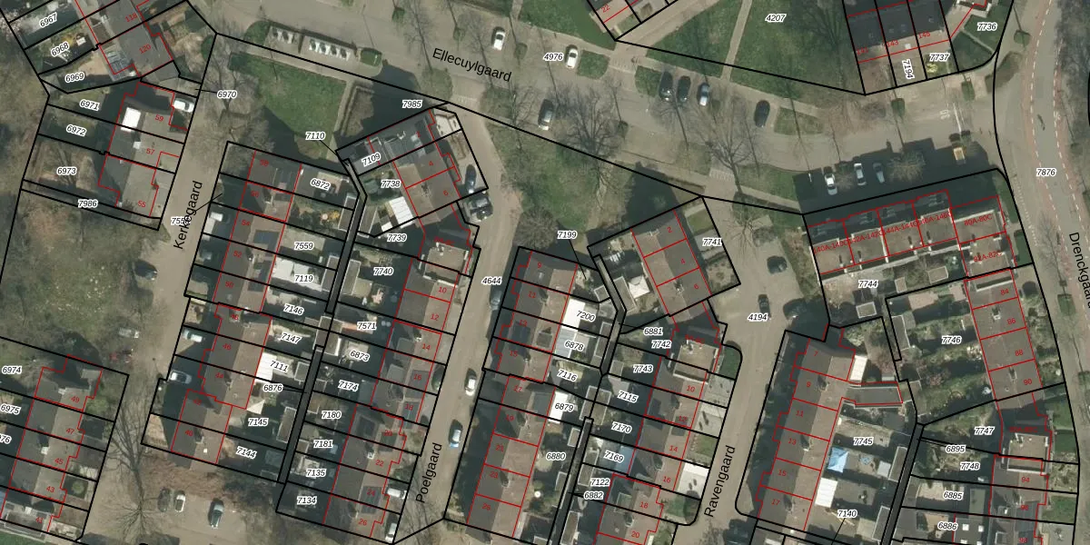 Gebruik de zoekbalk of klik op een perceel voor informatie over de adressen binnen dit perceel.