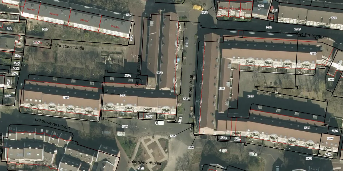 Pompenstraat 14-B is gelegen op kadastraal perceel MTT00A7890. Deze kadastrale aanduiding is uniek en wordt gebruikt door het Kadaster om eigendomsrechten en andere zakelijke rechten vast te leggen. Het perceel maakt onderdeel uit van de kadastrale gemeente Maastricht.