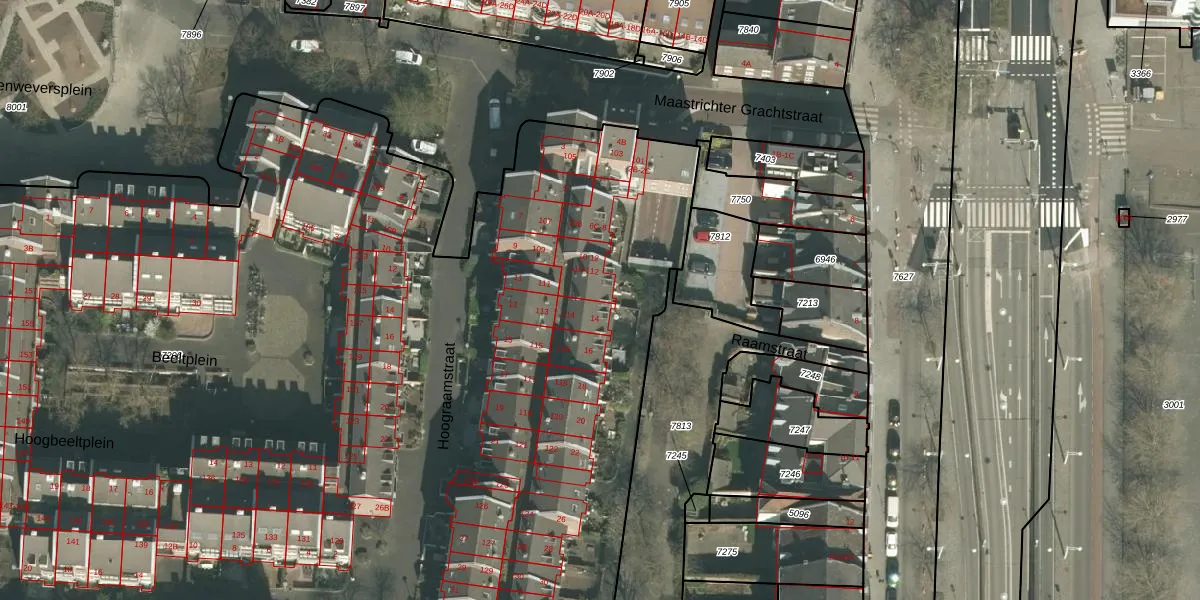 Raamstraat 12 is gelegen op kadastraal perceel MTT00A7206. Deze kadastrale aanduiding is uniek en wordt gebruikt door het Kadaster om eigendomsrechten en andere zakelijke rechten vast te leggen. Het perceel maakt onderdeel uit van de kadastrale gemeente Maastricht.